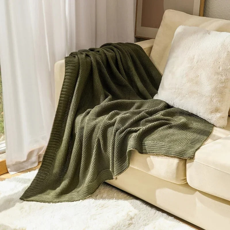 Whether tossed casually over a couch (as pictured) or folded neatly at the foot of your bed, this knitted blanket instantly adds a touch of cozy, lived-in elegance and serves as a functional piece you'll reach for again and again.