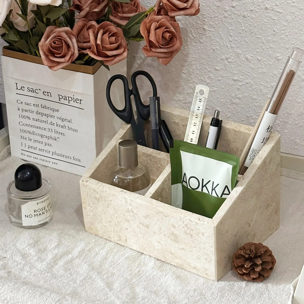 • Sturdy & Durable: The solid stone construction provides excellent stability, ensuring the organizer stays planted on your surface.