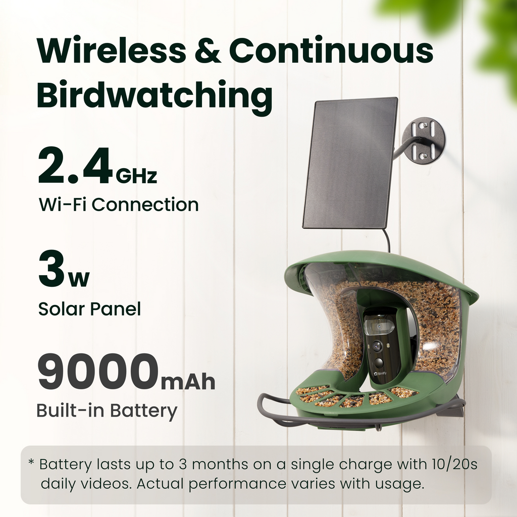 While the wide-angle lens captures video clips, the smart portrait lens automatically zooms in, sending feather-detailed bird videos straight to your device, making your backyard the goal of every birdwatcher.