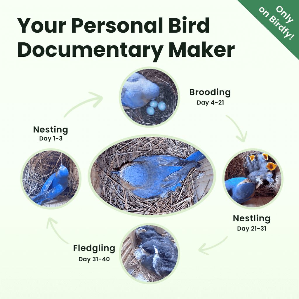 Birdfy's exclusive Story feature is like having a pro nature filmmaker at work. Watch as smart AI identifies your local birds and their behaviors, automatically editing beautiful moments of their nesting journey. -