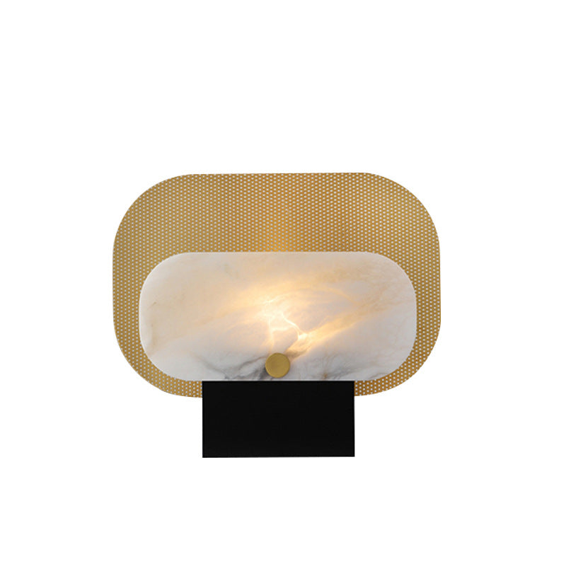 Crafted with a striking combination of metal, perforated gold mesh, and a softly illuminated marble panel, this lamp delivers a warm, light-luxury ambiance that instantly elevates your décor.
