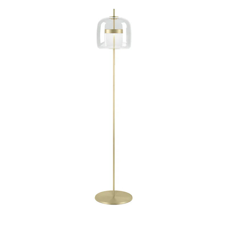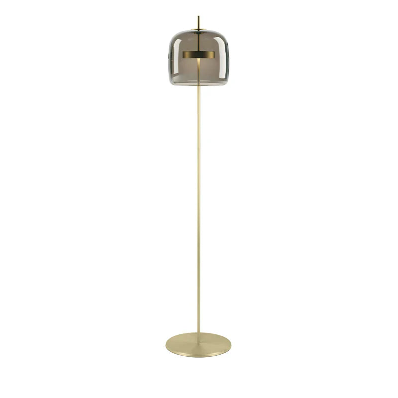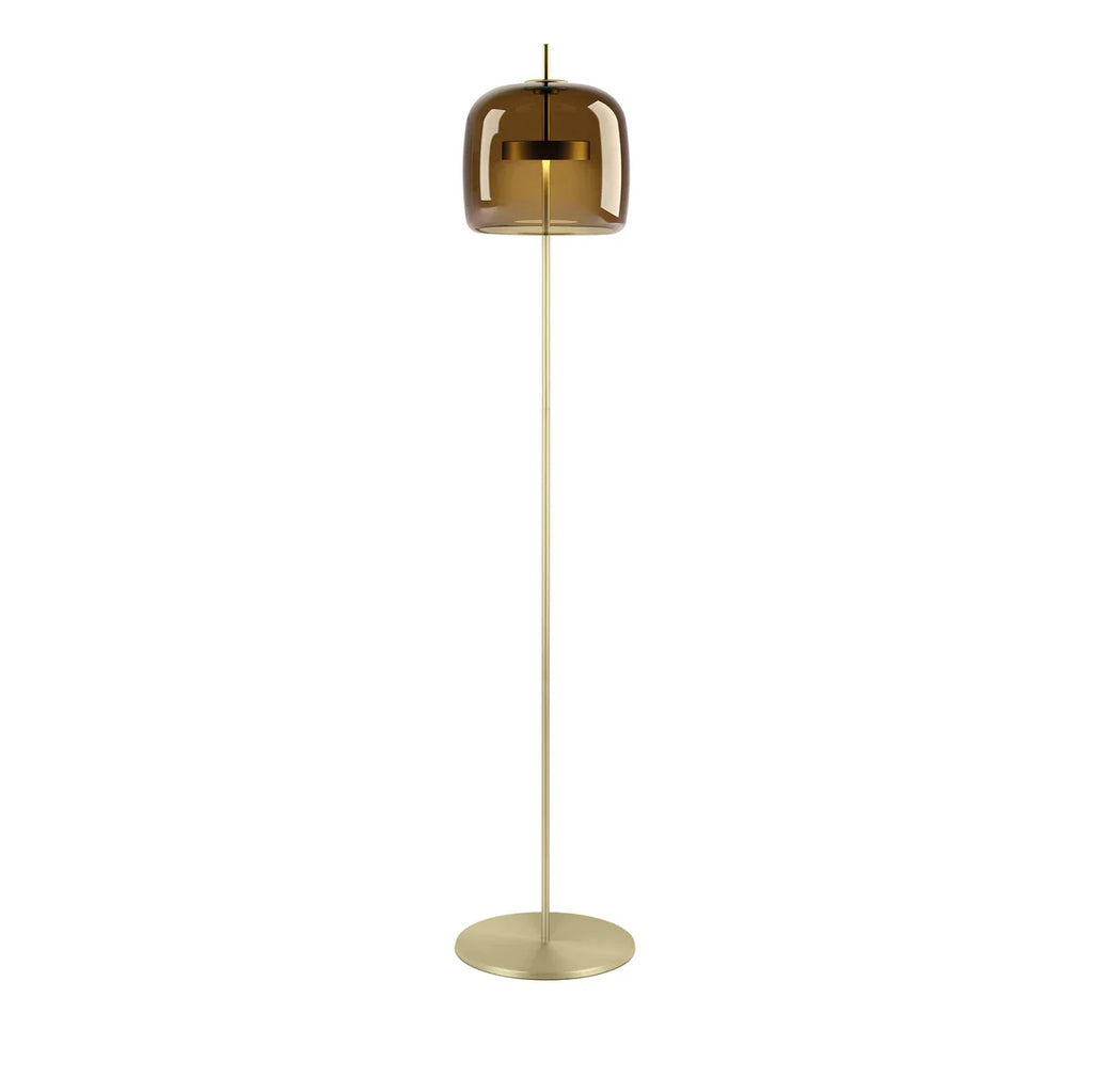 Retro charm. The elegant and delicate look of blown glass finds a new dimension in the Jujube Floor Lamp. Two glass units placed side by side are perfectly assembled, appearing as a unique piece. The result is a sinuous lamp, formed by superimpositions and featuring tone-on-tone colors that give it a precious, vintage mood.
