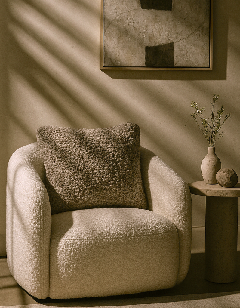 The Elara Bouclé Pillow from Studio Gonka brings depth and softness to any space with its rich, tonal weave and sculptural presence. The boucle fabric, woven in a warm taupe hue, adds subtle dimension, while the generous 20" square shape gives it a tailored yet inviting feel.