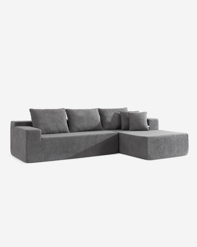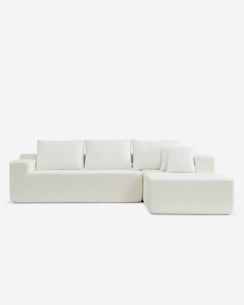 Put your feet up with the Cypress Modular Right-Side Chaise Sectional Sofa, upholstered in softly textured Bouclé fabric. With a Contour Foam base that provides the perfect balance between firmness and supportive comfort, this minimalist and modern sofa makes a stylish statement to complement and elevate your living space.