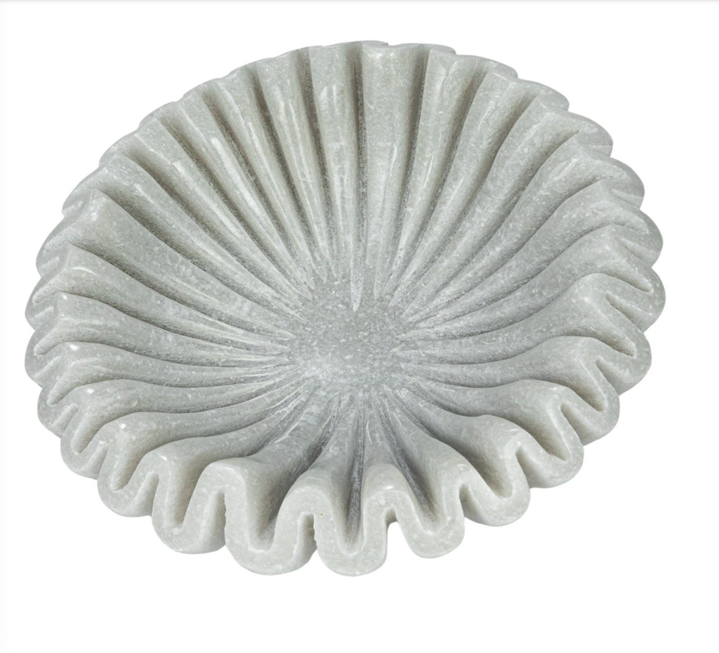 This elegant bowl, crafted from high-quality marble, features a smooth, glossy surface and a pleated design in a versatile white color. The natural, durable marble adds sophistication, while the pleats offer a stylish texture. Perfect for serving snacks, fruits, or desserts, it also works as a decorative piece or catch-all tray for small items. Ready to use and suitable for any space, this bowl enhances the home with both beauty and functionality
